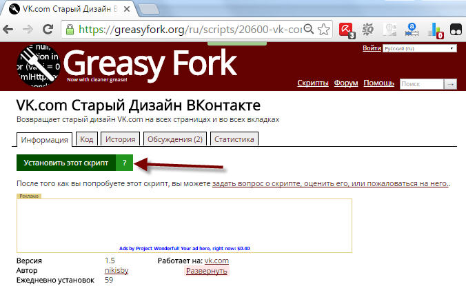 В открывшейся вкладке кликаем на кнопку «Установить этот скрипт»: